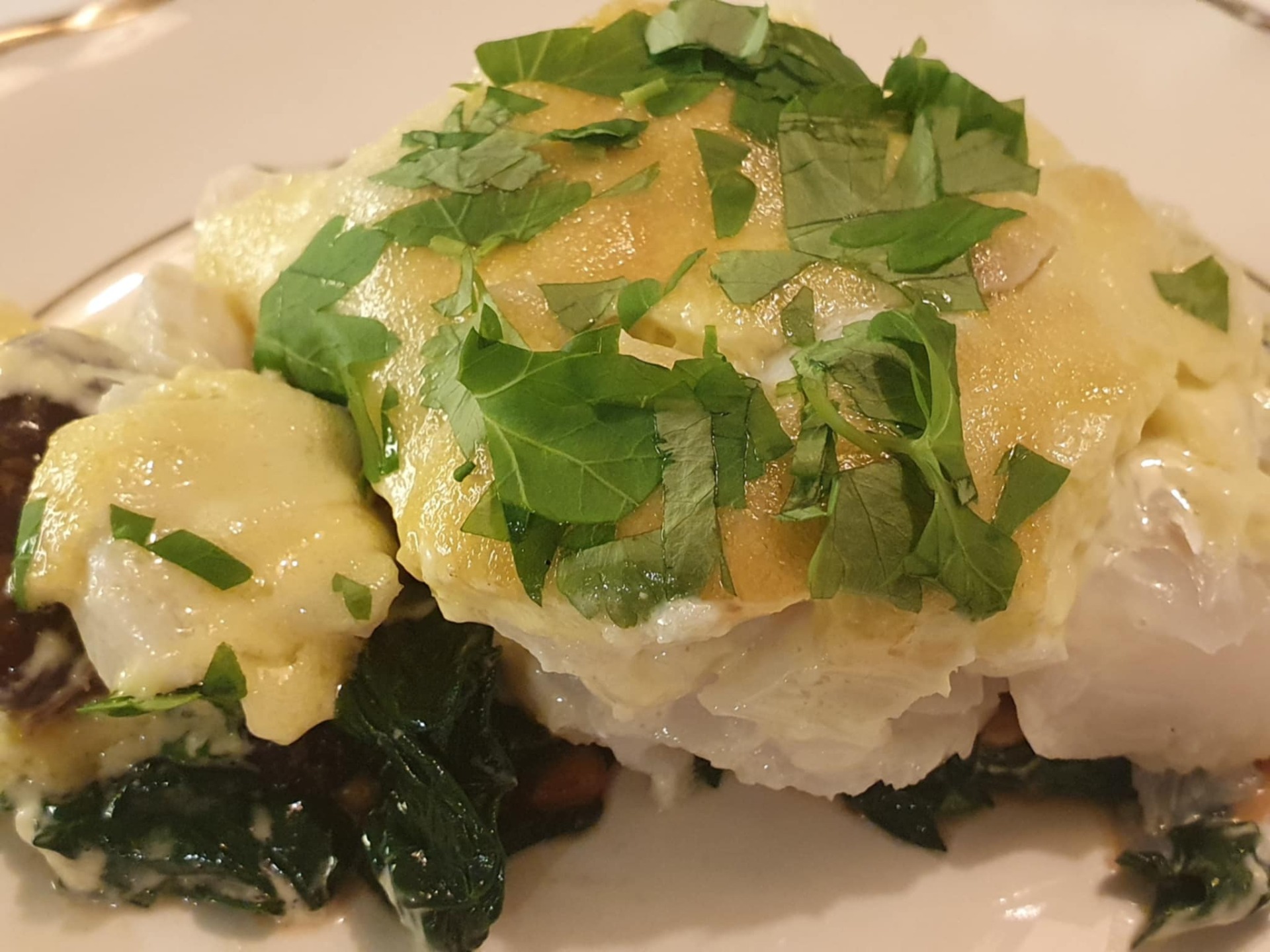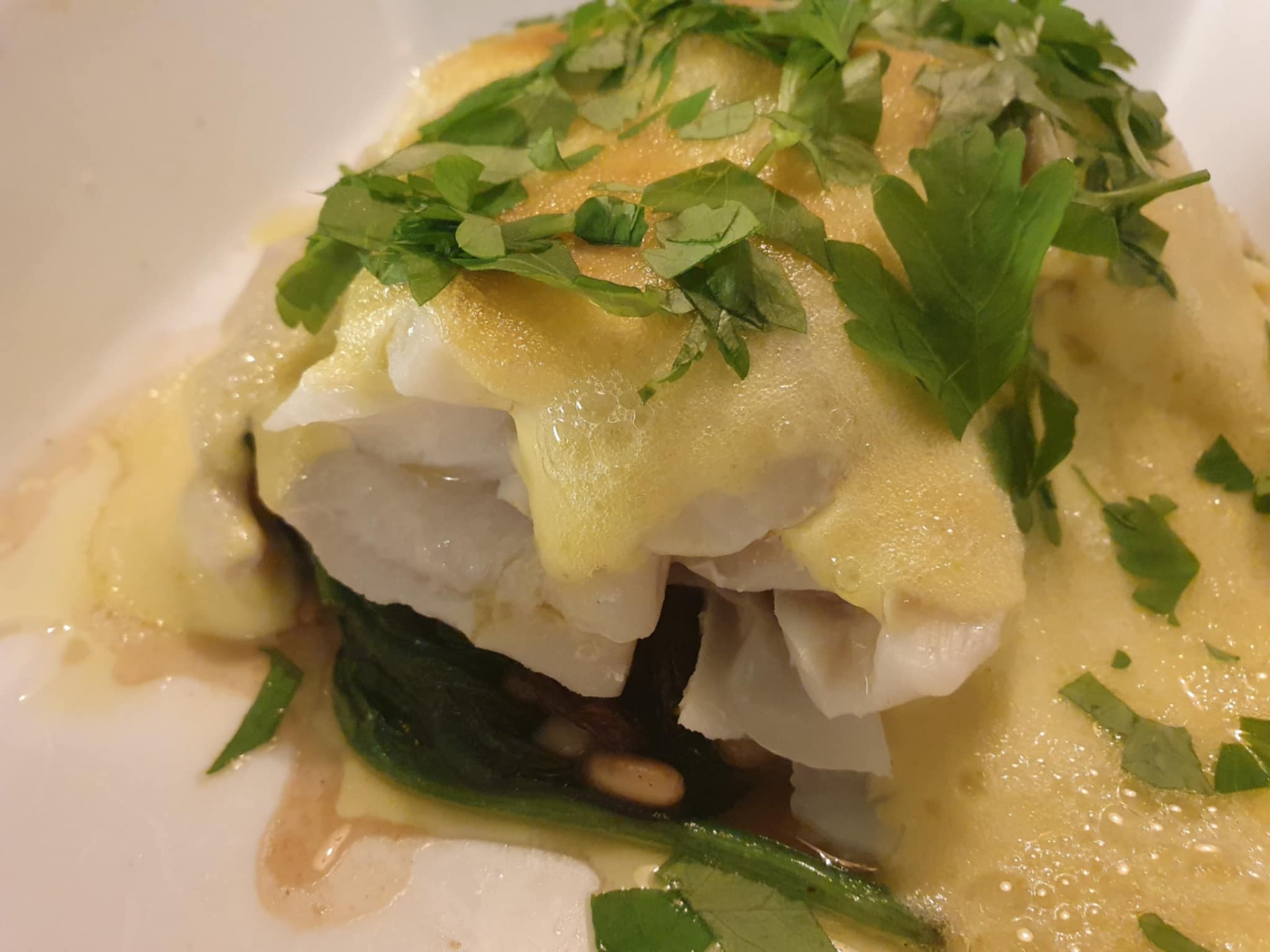 1. Lägg torskryggen i en mikrovågssäker form och pensla den med lite fiskbuljong. Täck formen med plastfolie och tillaga i 3 minuter på 900 W.