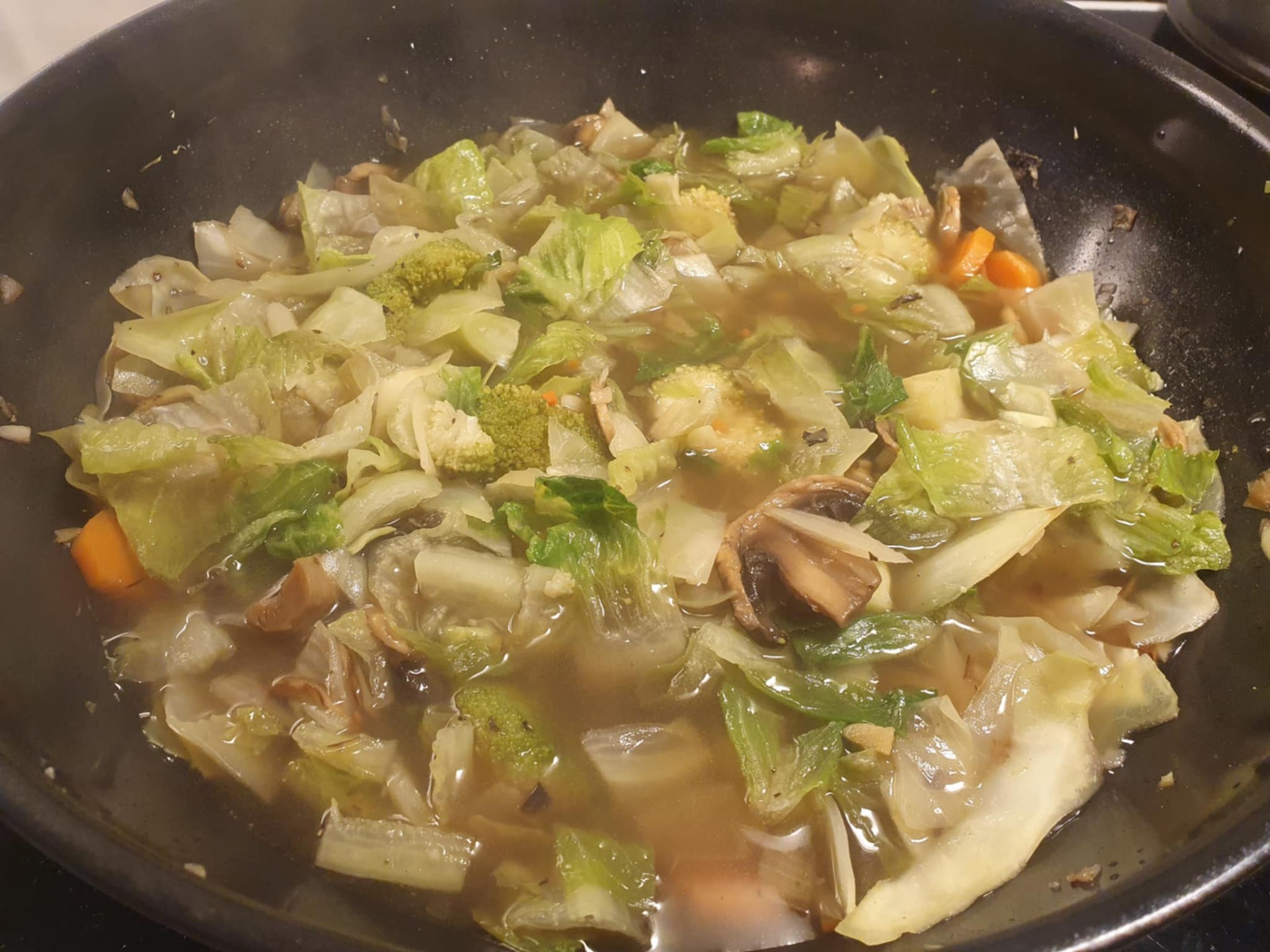 6. Tillsätt sedan grönsaksbuljong eller vatten.